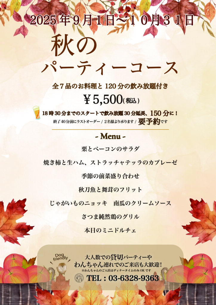 ※スタンダードプランの飲み放題は120分制となります。予めご了承ください。食欲の秋!大満足の季節のコース2025年 秋のパーティープラン